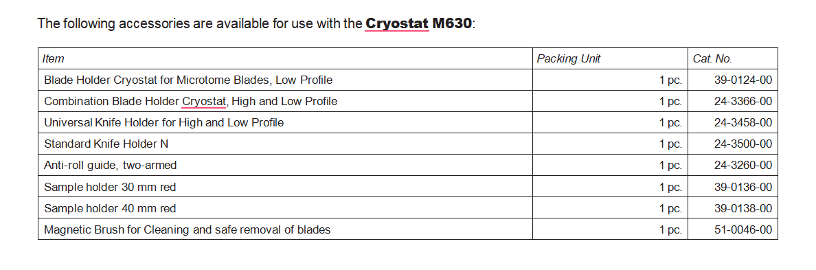 The Cryostat M630 has low energy consumption and is both resource-saving and quiet. Included in the delivery are five sample holders and a magnetic brush for the safe exchange of microtome blades. Blade holders are available separately.